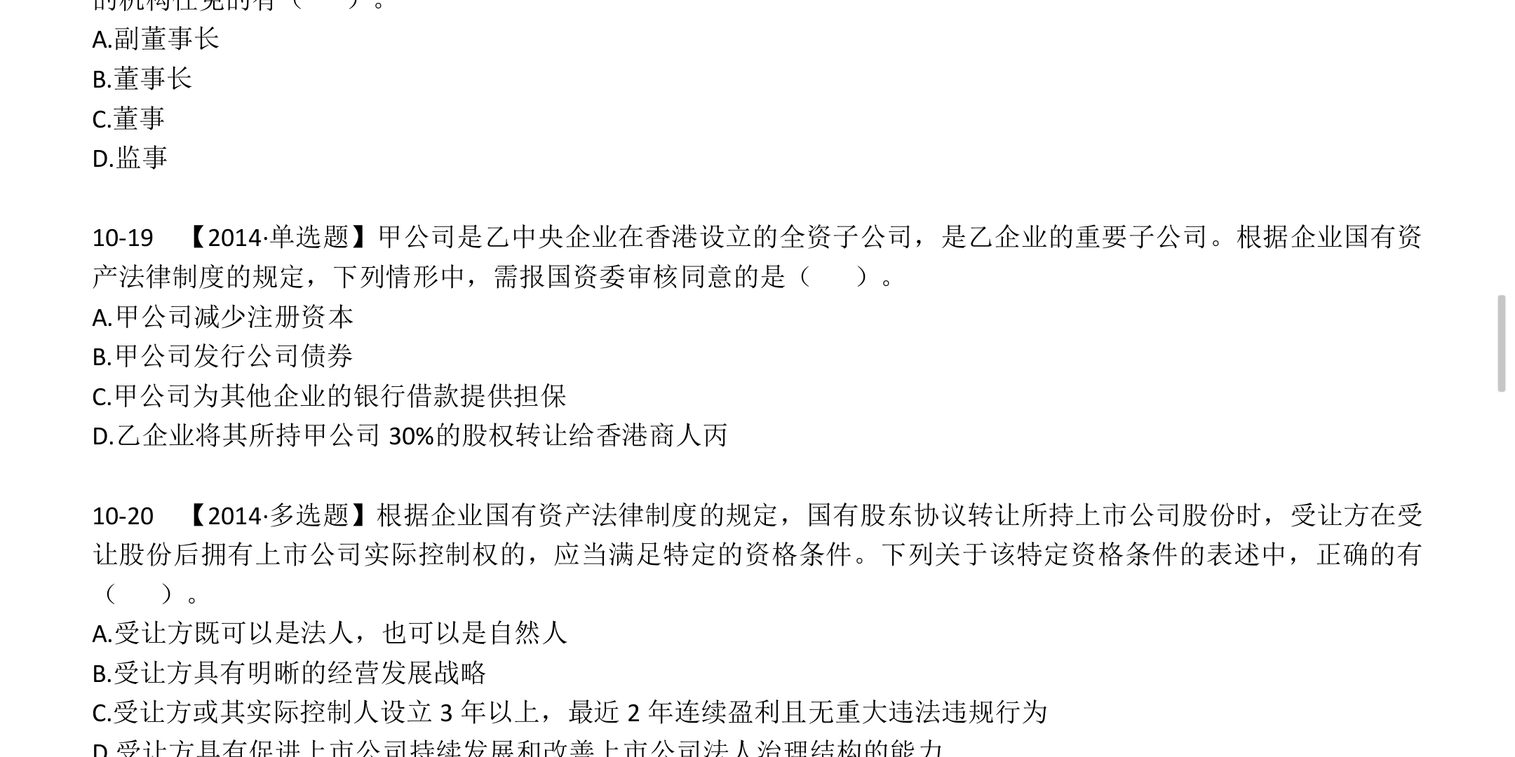 ”企业境外国有资产管理制度“教材在今年删除了,同学遇到了题目单独记一下,有印象即可。考的可能性非常低。