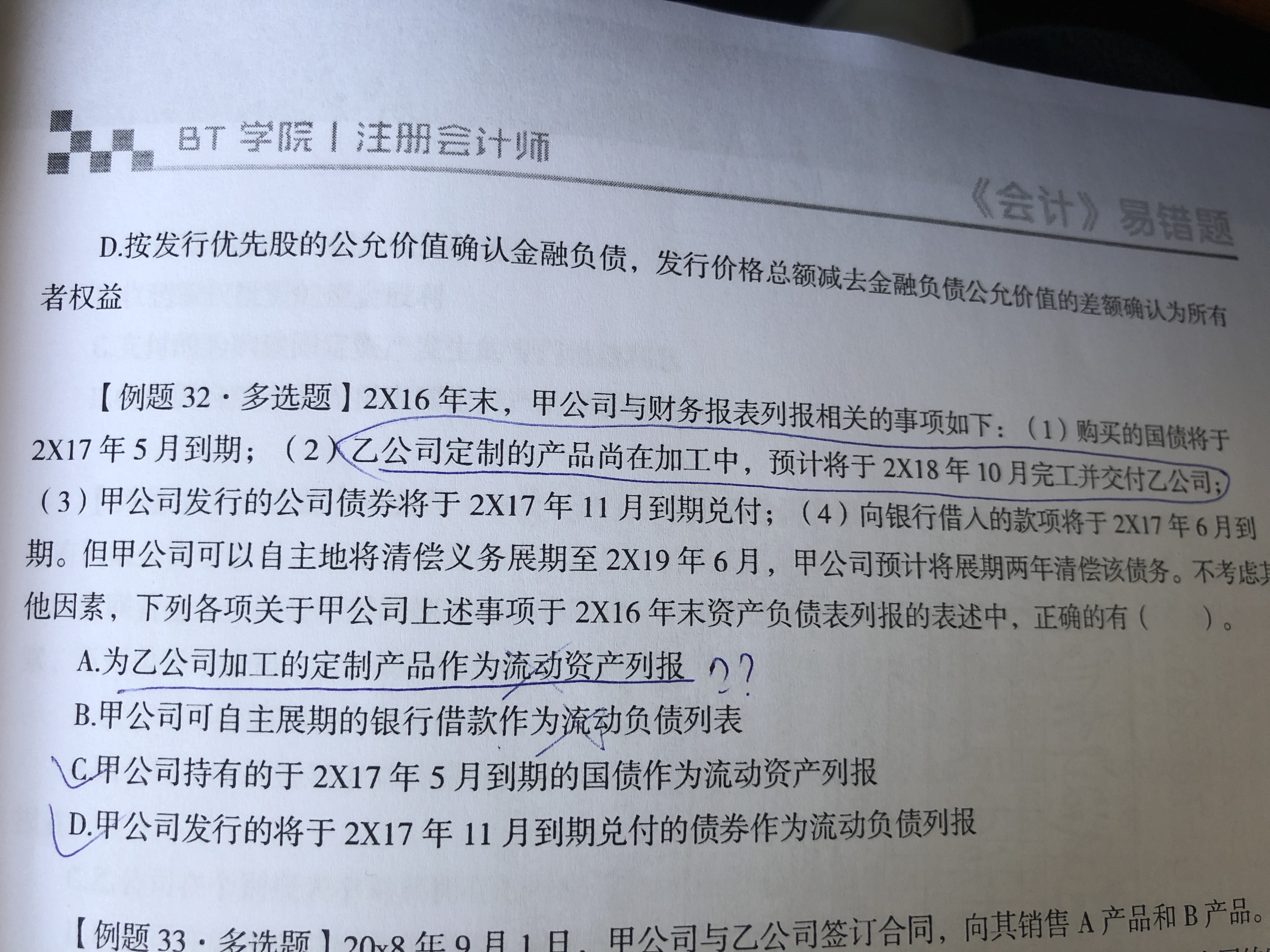 第32题选项A,2年内完工的在产品,属于流动还是非流动,按现行会计制度
