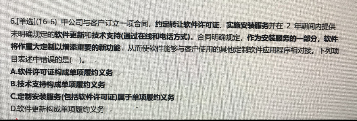 根据下面的话可知软件和安装作为一项单项履约义务。