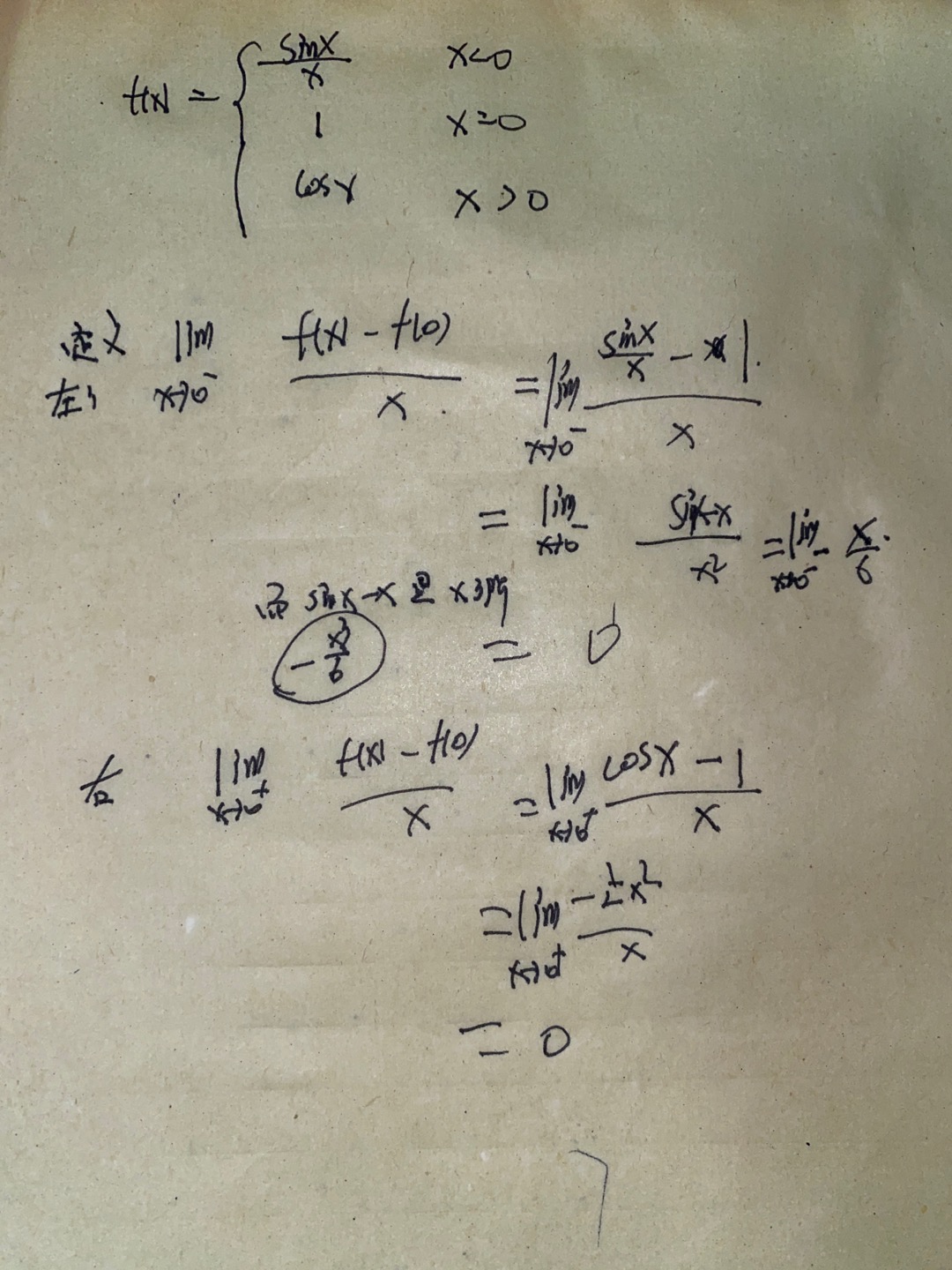 连续所以极限值等于函数值。而给的式子 分母趋于0,所以分子的极限也应该是0。所有函数值为极限值等于0
