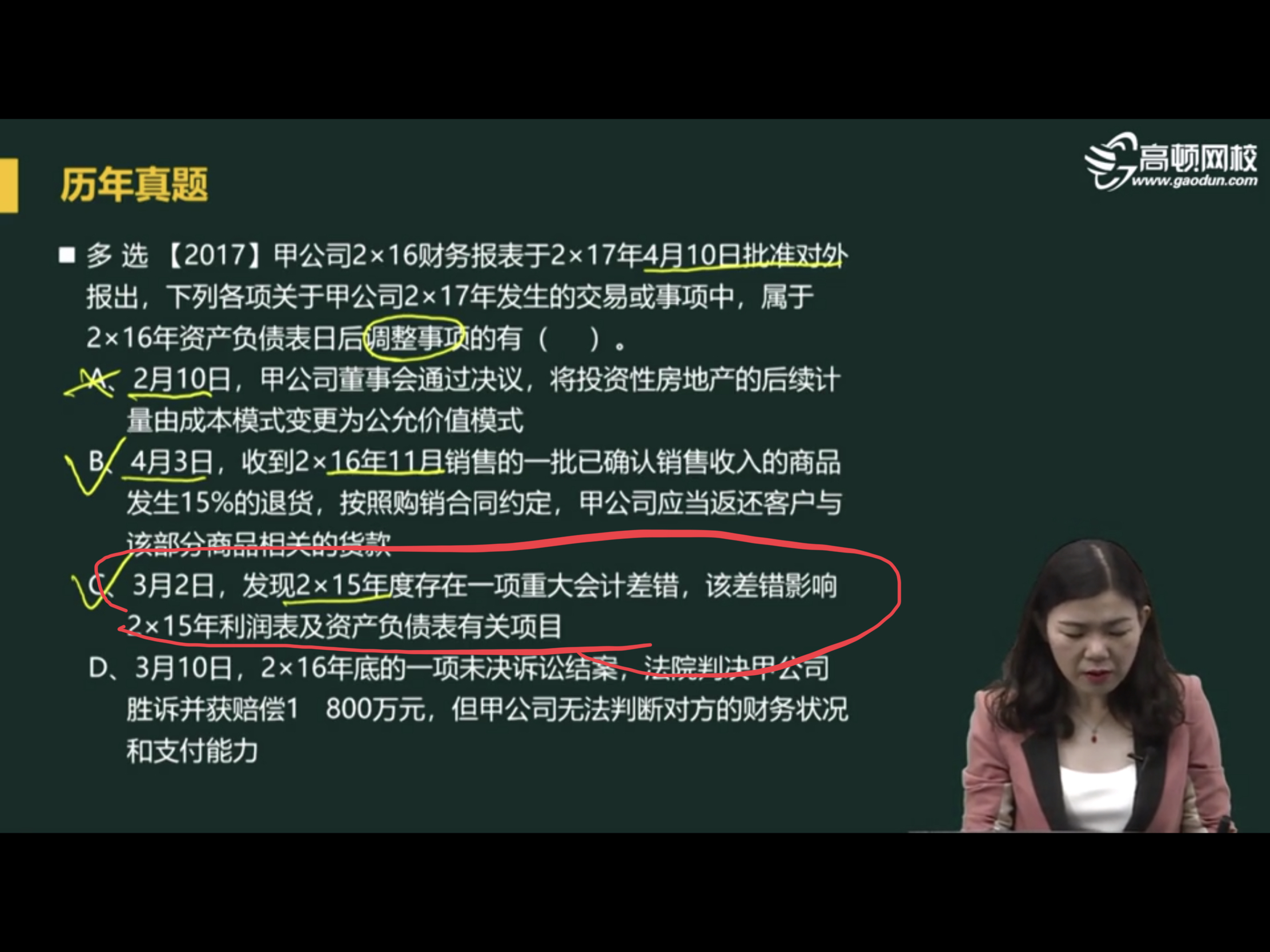 君不见同学,你好,关于c为何调整16年财务报表若不在资产负债表日后事项涵盖期间要调整吗? 我的回答如下