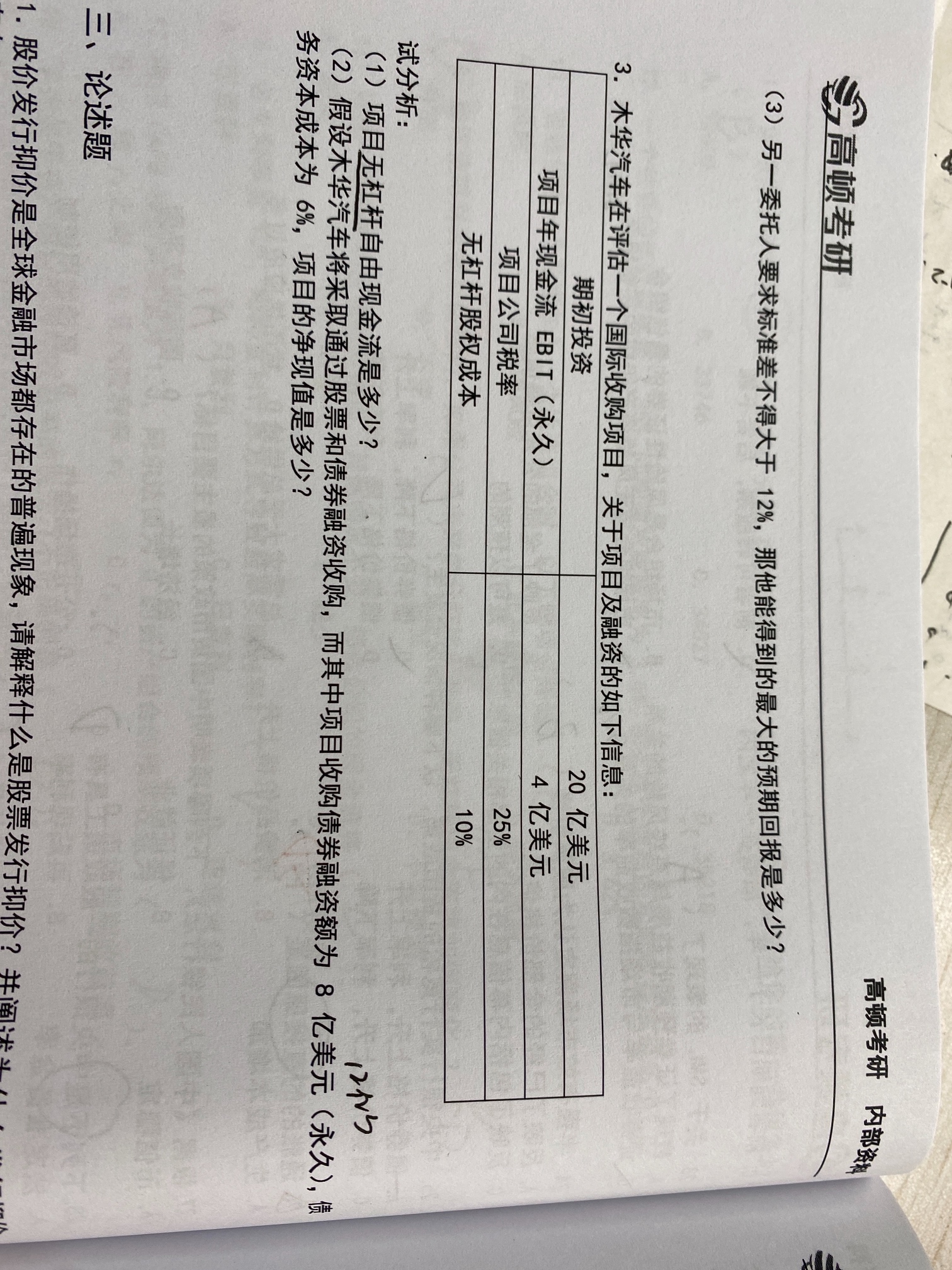 在做这类题目时,要根据题目的条件选择一种最合适的方法进行计算,当题目中明确给出B/S或B/V时再考虑适用WACC法和FTE法,
