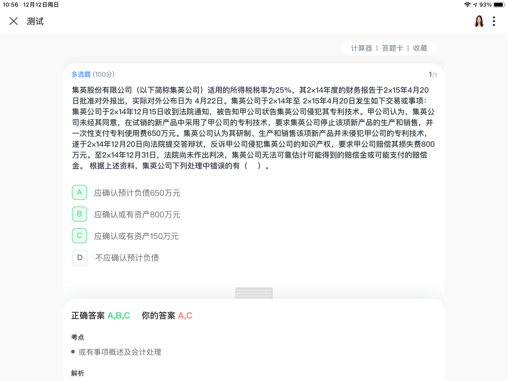 安之若素同学,你好,关于关于确认或有资产的会计此题,我的理解是否正确?能否解释一下我提出的问题? 我的回答如下