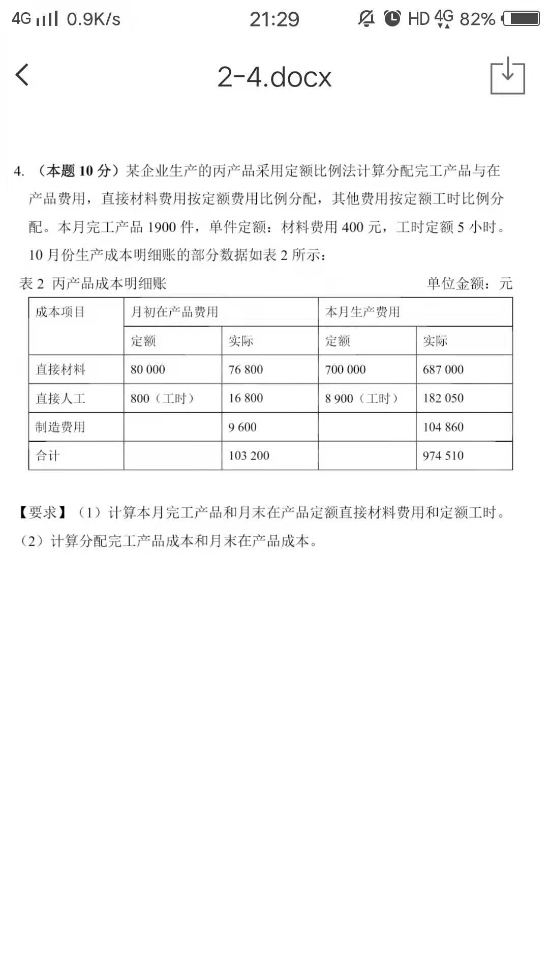 定额比例法是完工产品和在产品成本分配的一种方法,本月实际成本中完工产品按定额比例占了多少金额,月末在产品按定额比例占了多少金额。