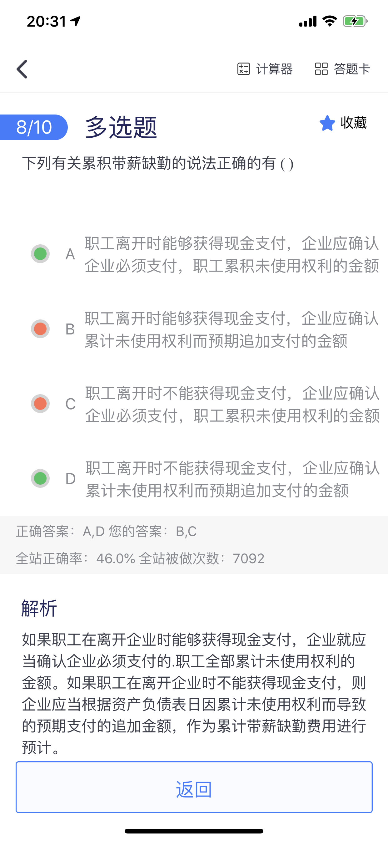 简单的来说,因为职工在离职时不能获得现金支付,所以职工在第二年是很可能在他离职时行使掉今年的未使用的这个权利,那么站在企业的角度,在今年就需要对这一部分在本年确认费用,并确认可能要多给的职工薪酬~老师这么解答,同学可以理解吗,继续加油哦!