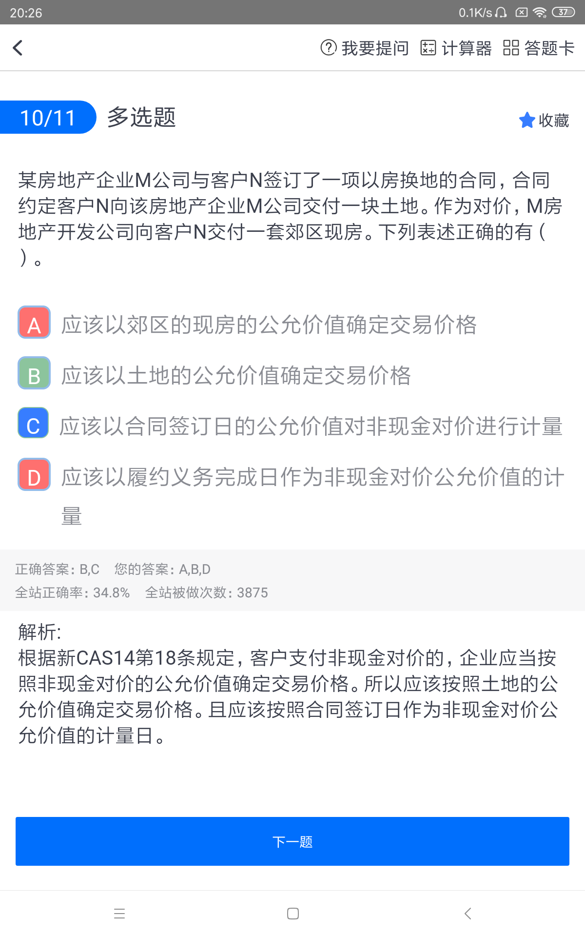 老醯儿同学,你好,关于选A是要把这题的房地产企业改成软件开发公司等非房地产企业吗? 我的回答如下