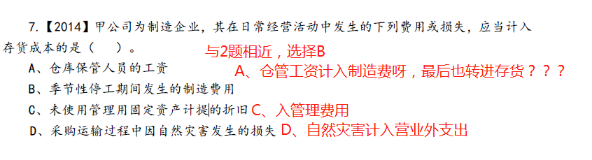 其他的分析没有问题哦,只有仓储保管人员工资,这里保管人员保管的仓库中很多商品,没办法细分,所以不能列入到存货成本只能列入“管理费用”。