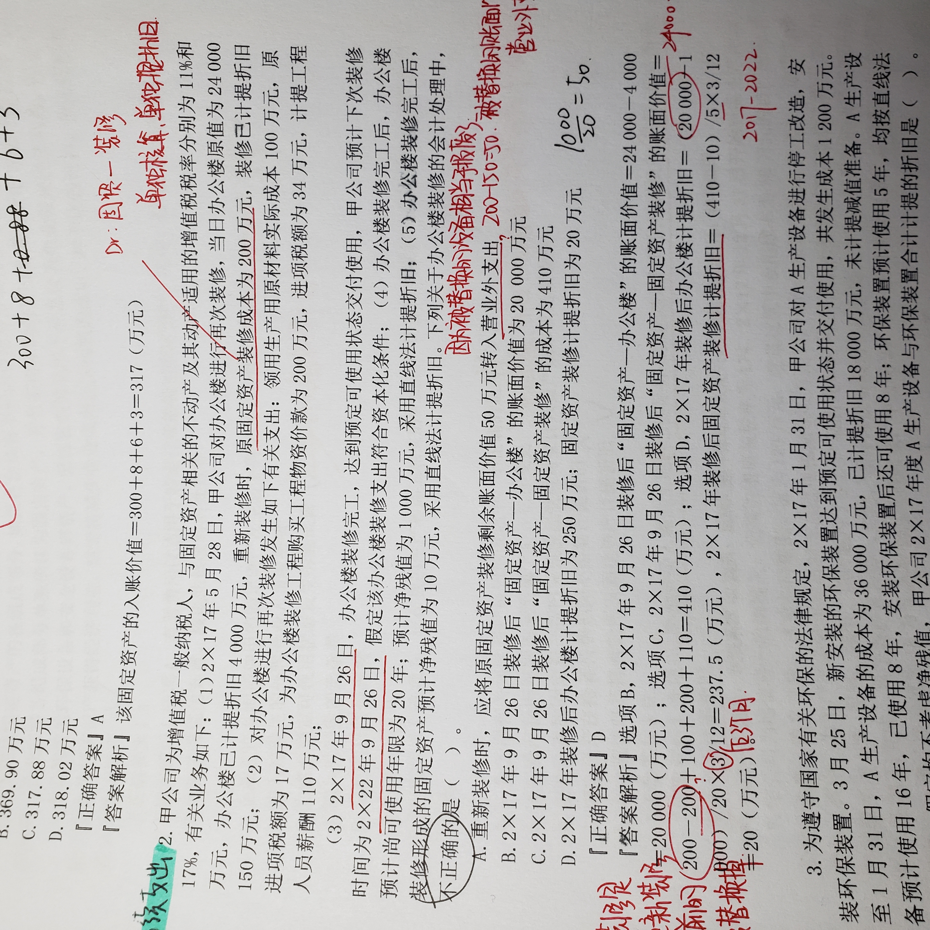 D 不对是那个办公楼的折旧算错了,不是装修的折旧不对