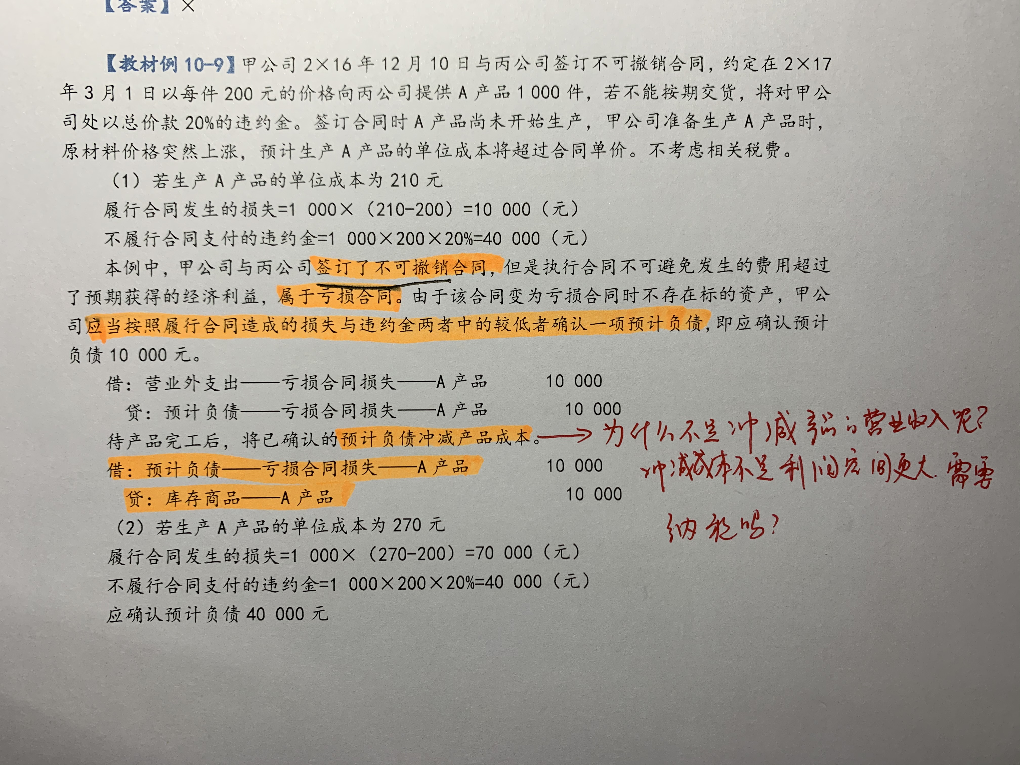 吖头的回忆同学,你好,关于为什么亏损合同的预计负债冲减的是库存商品而不是冲减隐性收入? 我的回答如下