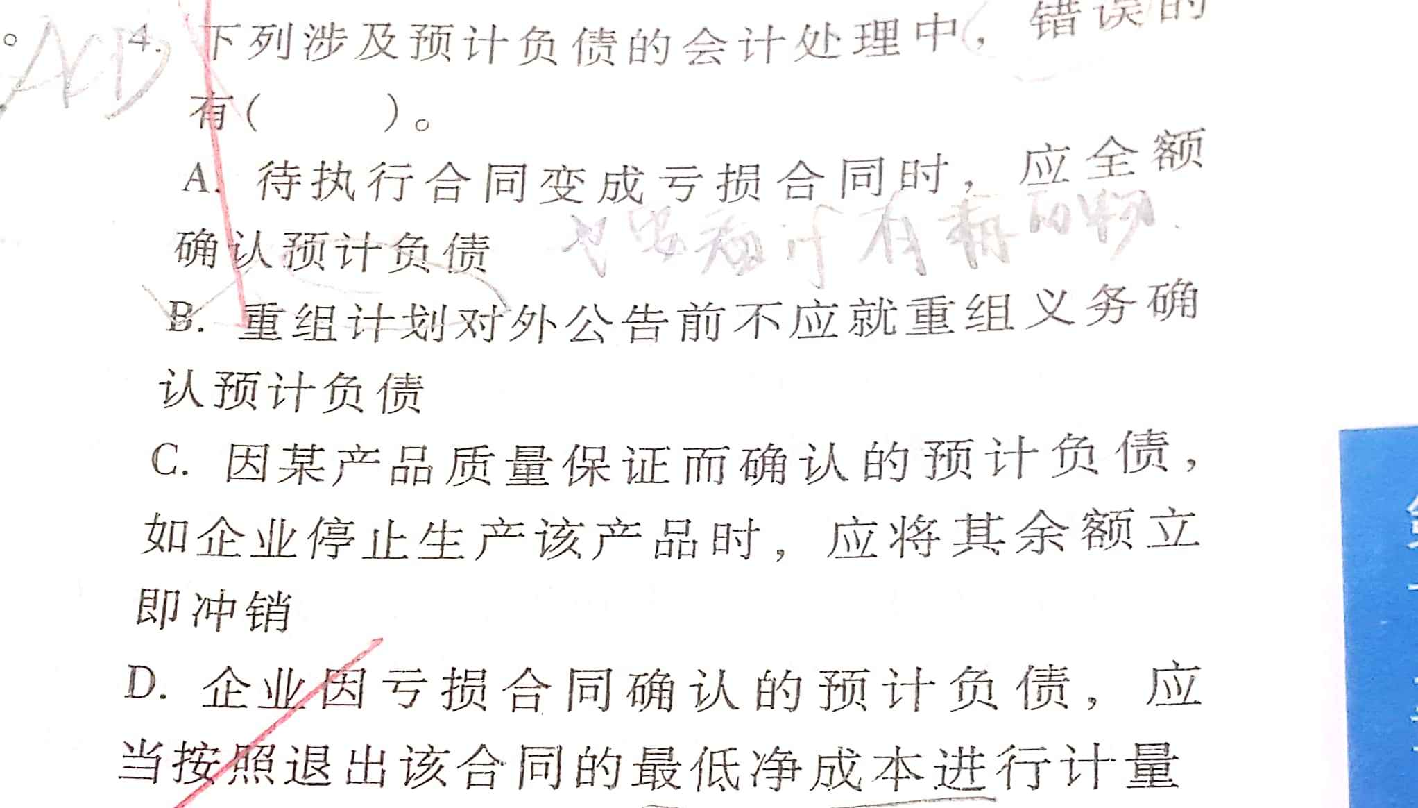 举个例子: 如果执行合同,能获得3块的收益,但是有5块的亏损。合同亏损的净成本是2块。