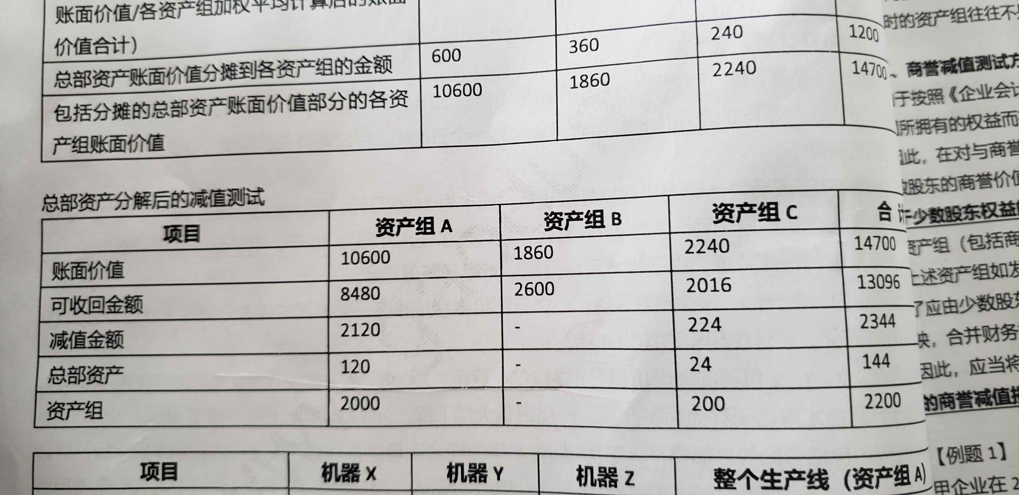 老师,请问这个表格中总部资产和资产组一栏中的120 24 2000 200 这几个数据是如何得来的?