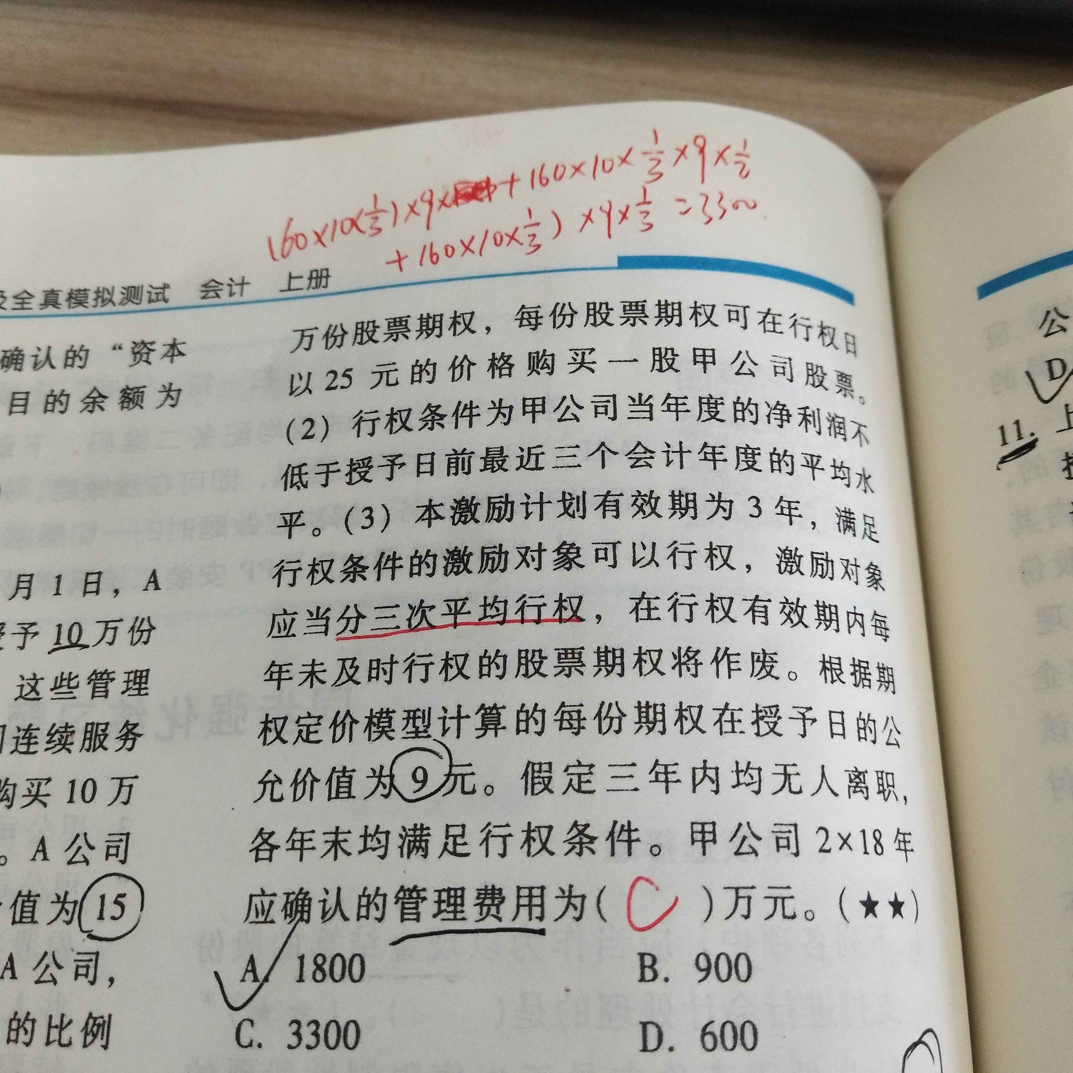 你可以再看一下题目,因为有效期是3年,所以是按年确认,所以每年确认当年的费用。加油哦~