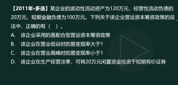 CICI同学,你好,关于会计此题选项C的筹资政策对易变现率的影响是什么? 我的回答如下
