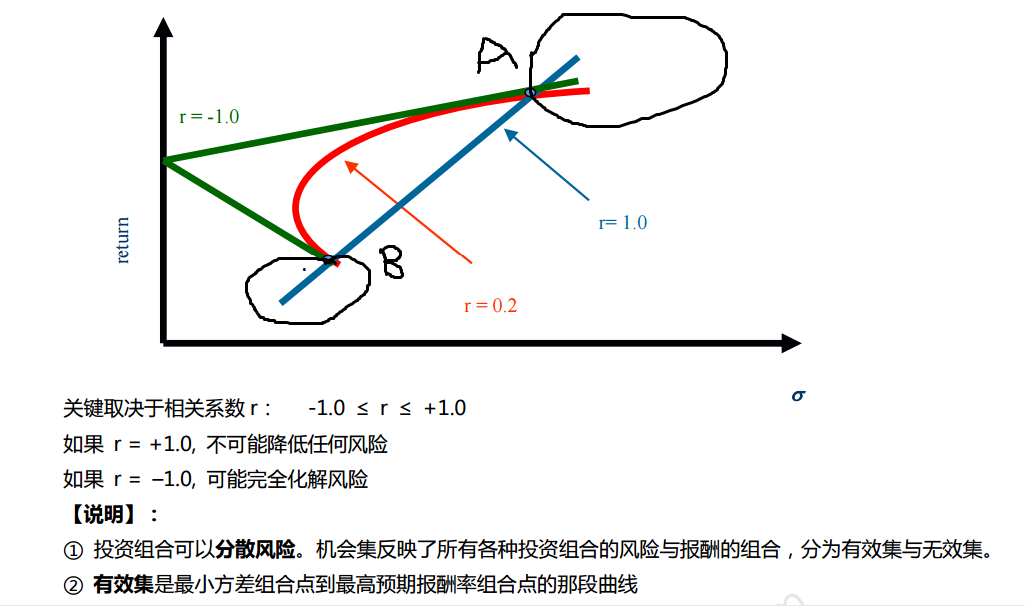 机会集仅限于A、B之间的线段,超出A、B点的线都不属于机会集,即圈起来的线都不属于机会集?