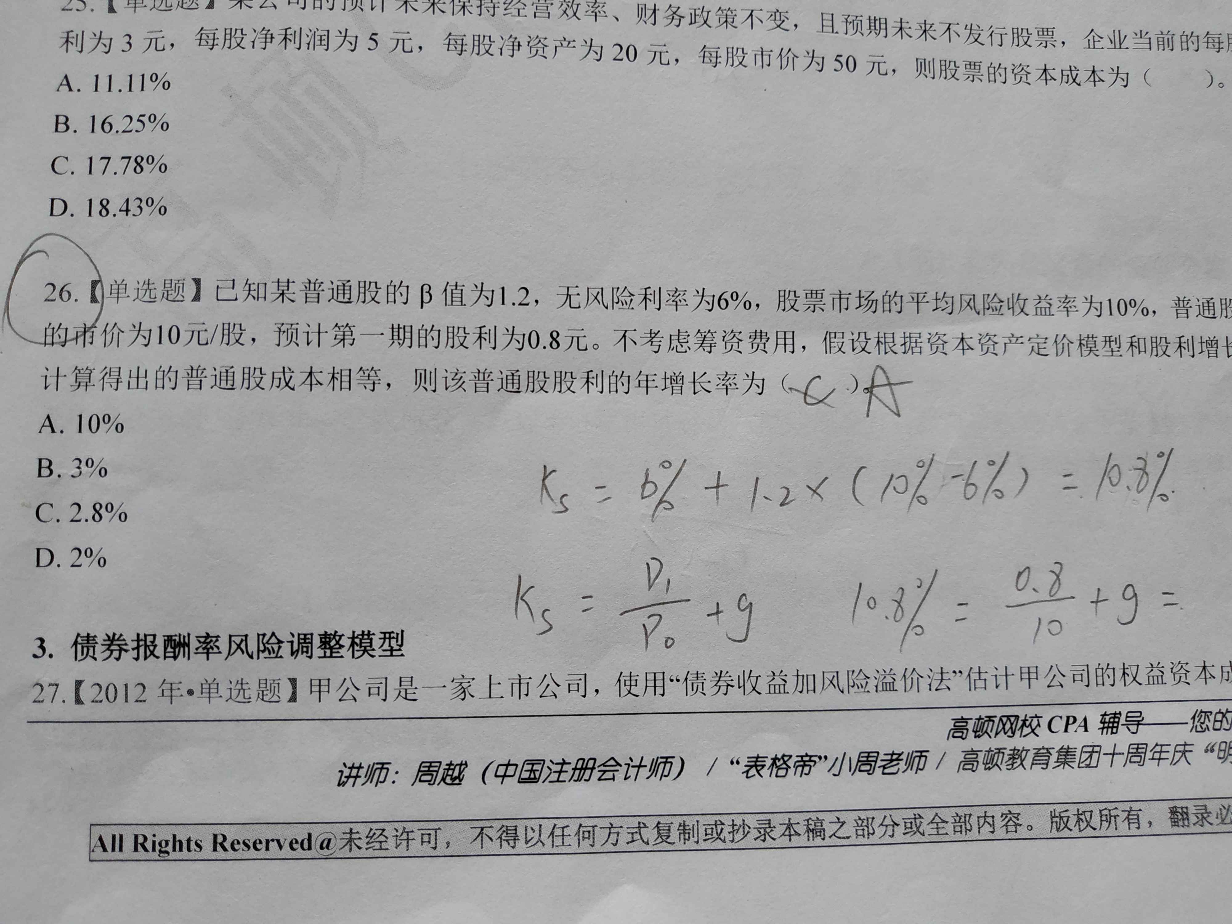 资本资产定价模型不是Rm-Rf么?为什么答案这里不是6%+1.2*(10%-6%)而是6%+1.2*10%呢?