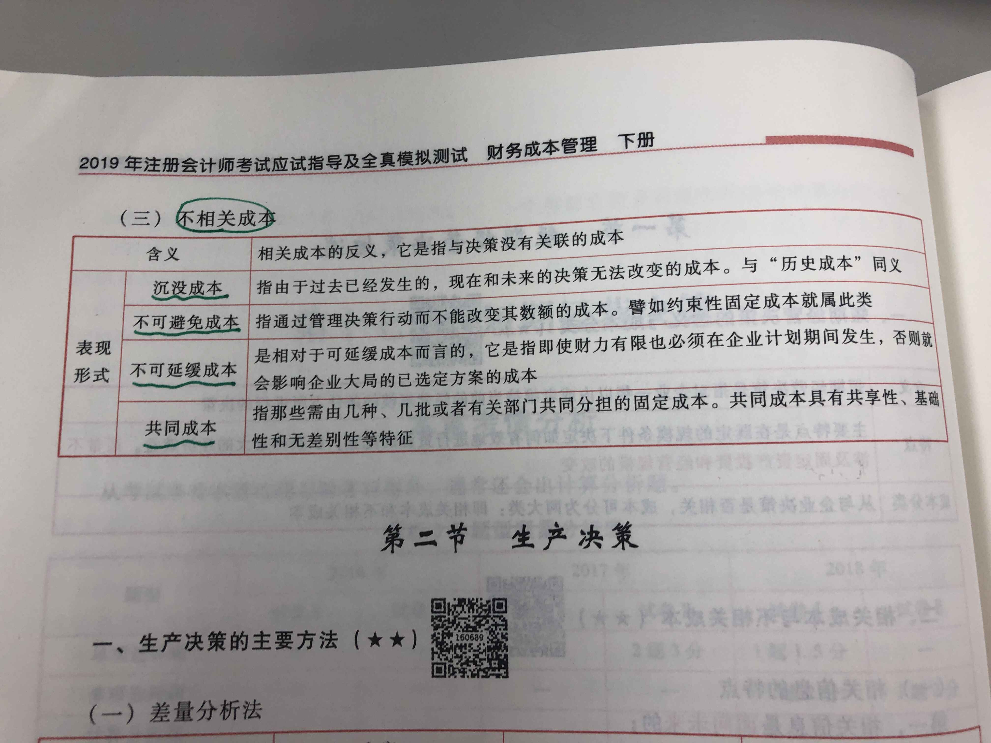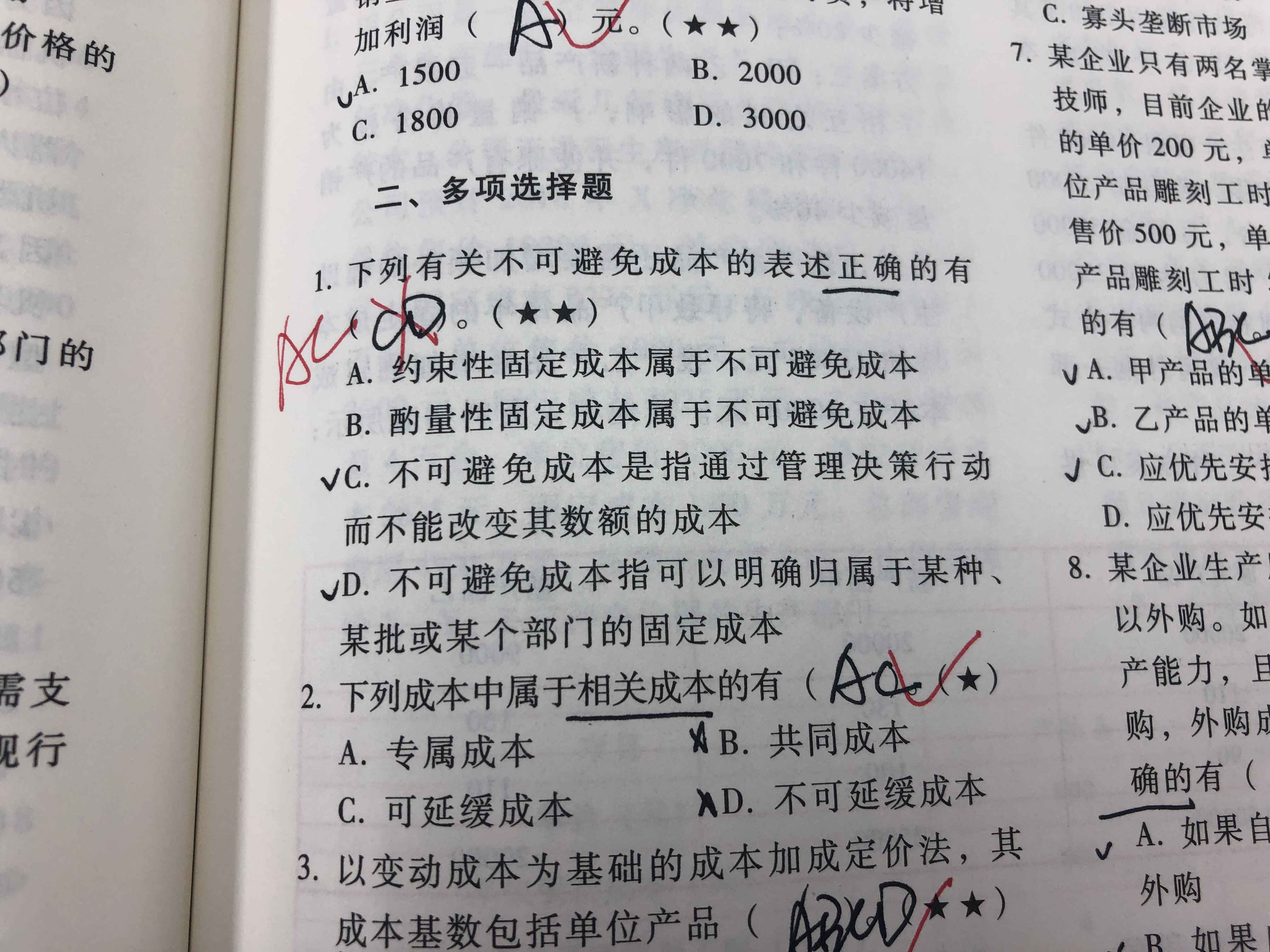 第一题a选项 老师您看后面两幅图中的不可避免成本和可避免成本 都说约束性固定成本是此类... 我很懵