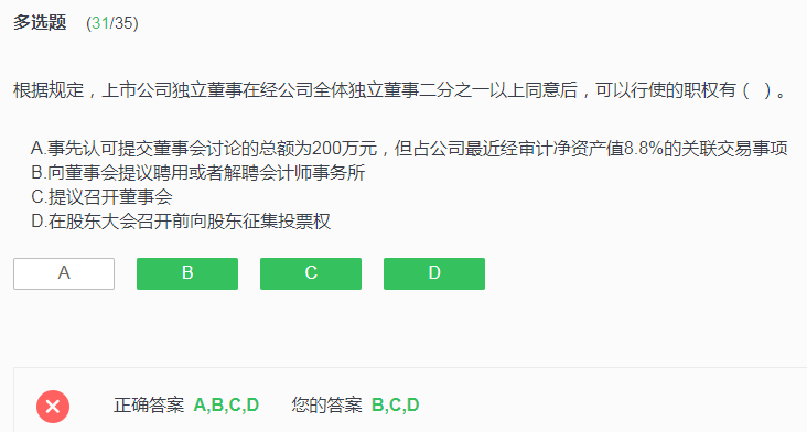 展开sunshine同学,你好,关于会计acca的这题的A项的独立董事的特别职权怎么理解? 我的回答如下
