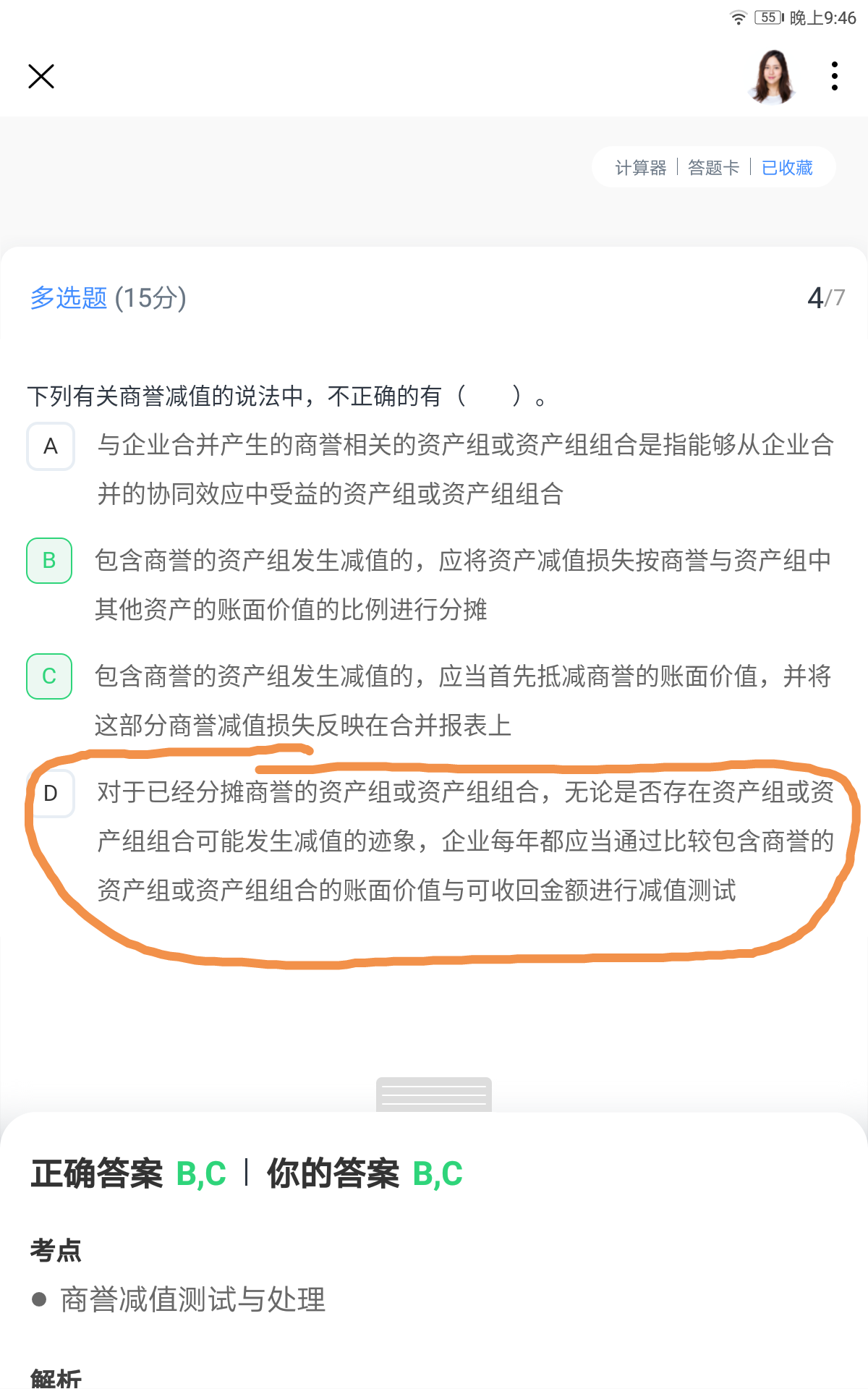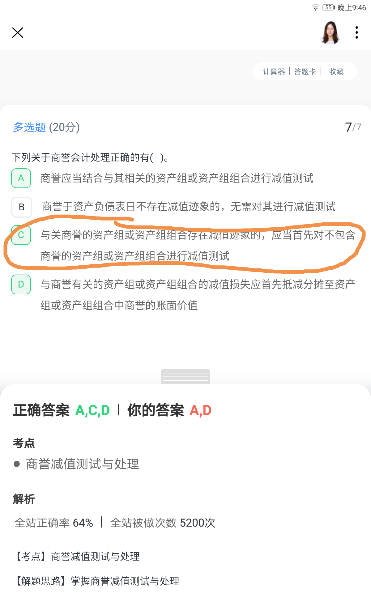 PB同学,你好,关于减值测试的时候,先用不包含商誉会计的资产组测试吗? 我的回答如下