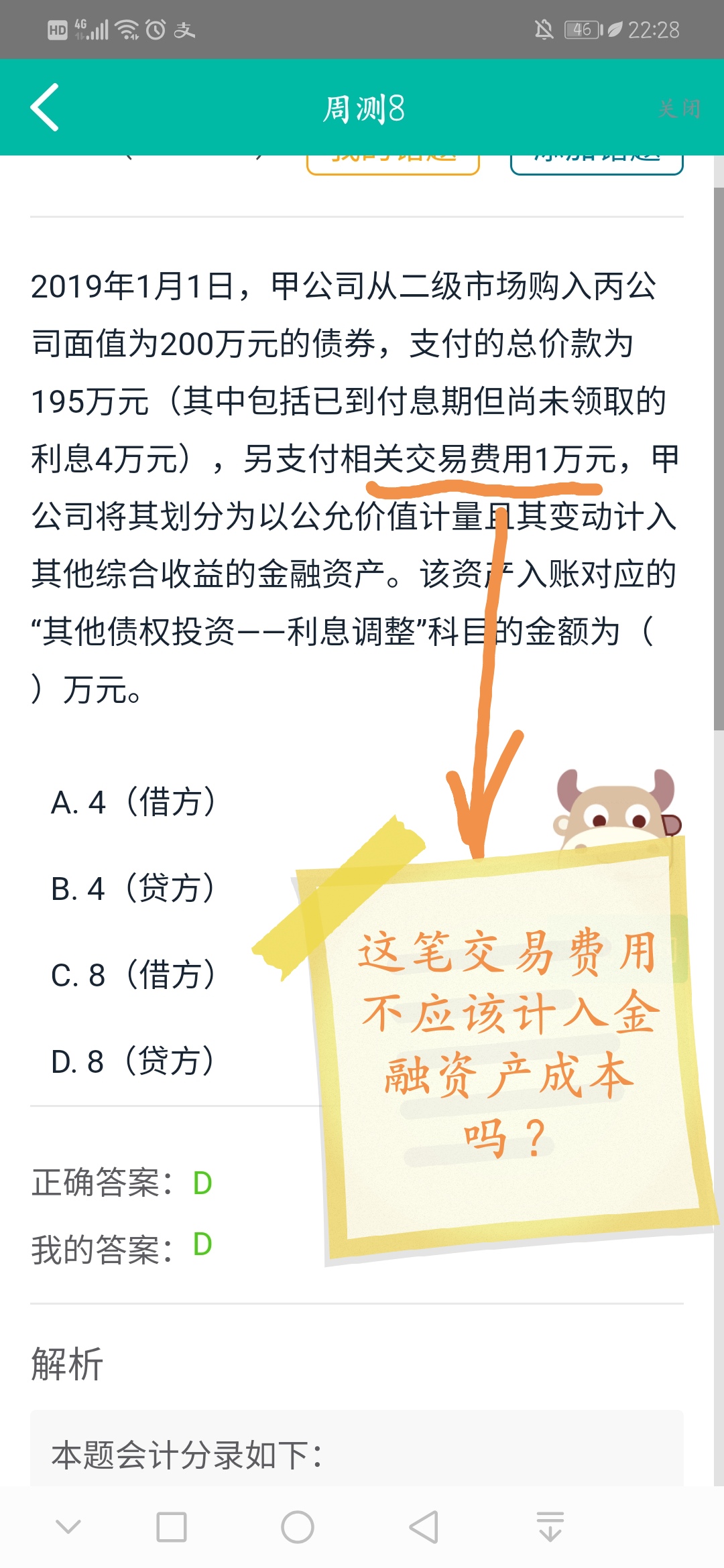 勤奋的同学,你好!是的,要计入金融资产的成本,你看原来是195-4,然后再加上1,就是192,利息调整是200-192=8(贷方)。祝同学逢考必过,加油~