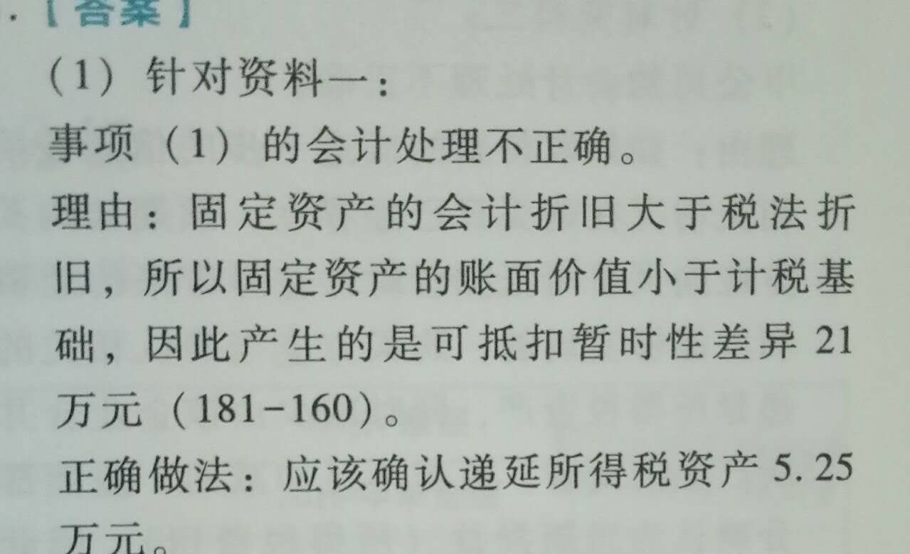 老师,请问下这个第一小问它的会计折旧年限和税法折旧年限一样的,答案是怎么判断出来固定资产会计折旧大于税法折旧的呢?