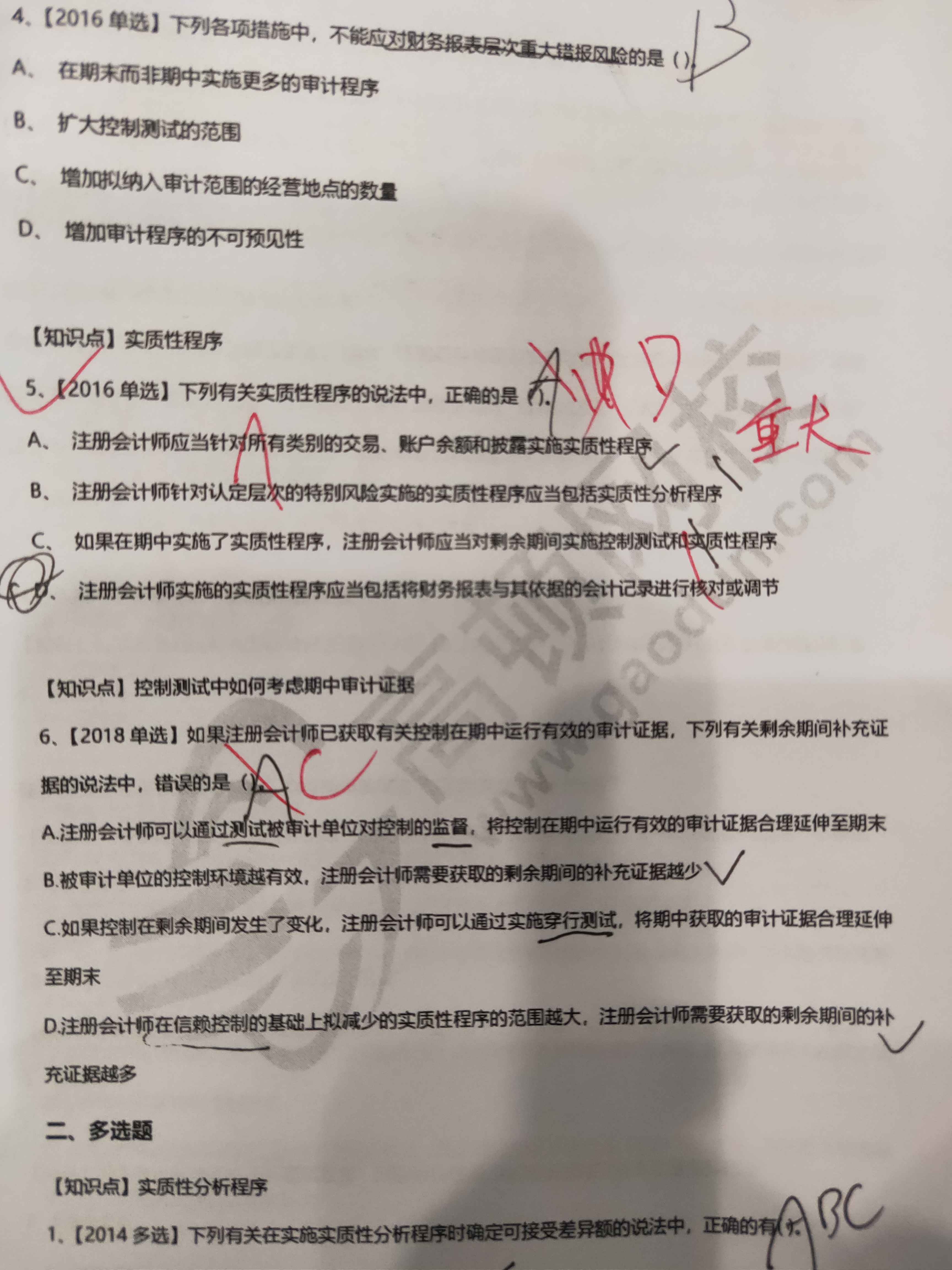 A选项中,被审计单位对控制的监督体现其控制环境,控制环境好的话,可以为剩余期间控制的有效性提供审计证据。C选项是肯定不对的,所以在单选题中必然选C。准注会加油~