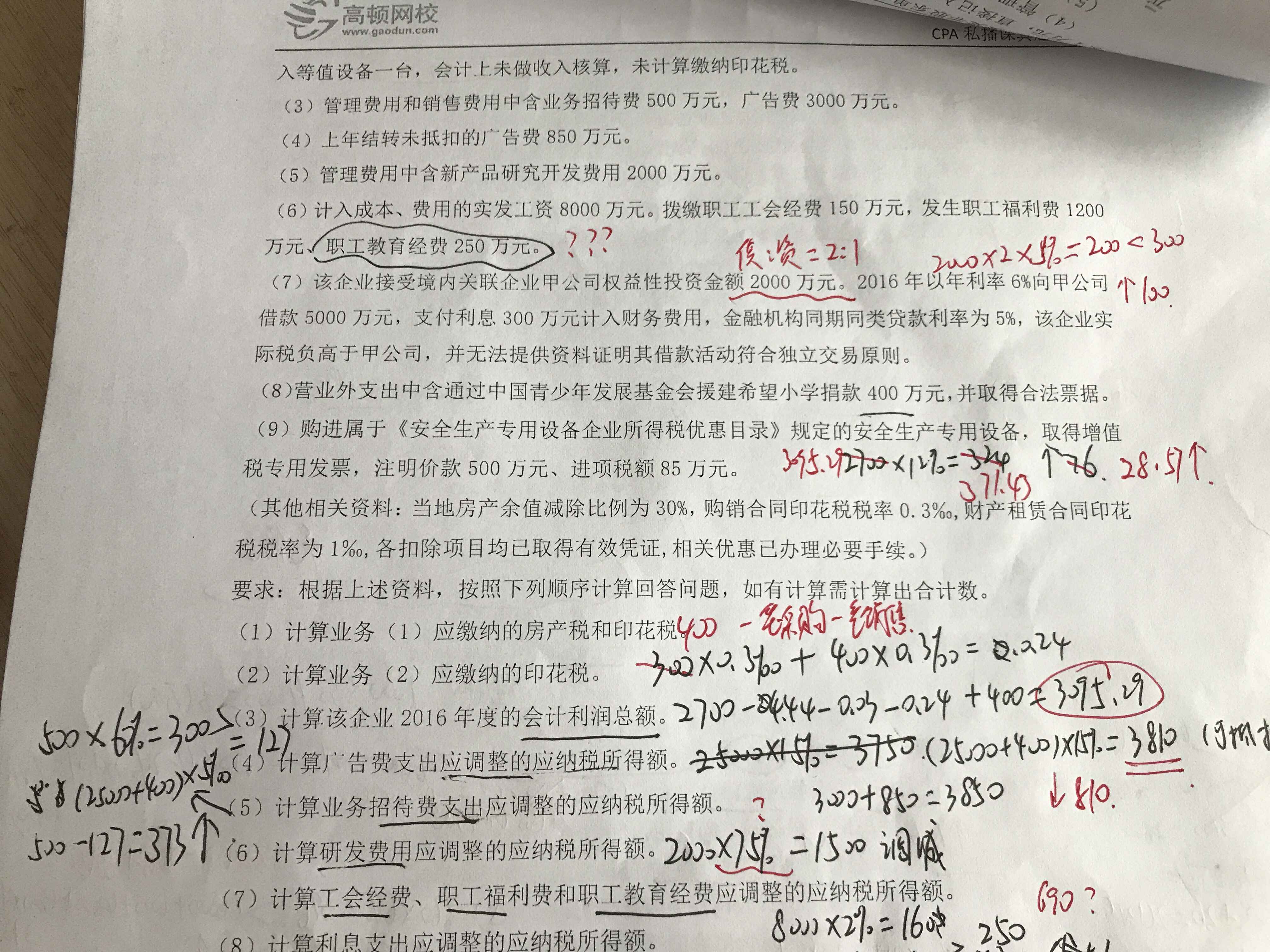 1.研发费现加计扣除比例已改为75%;2.职工教育经费实际发生额为250万元,没有690万元这个数字。