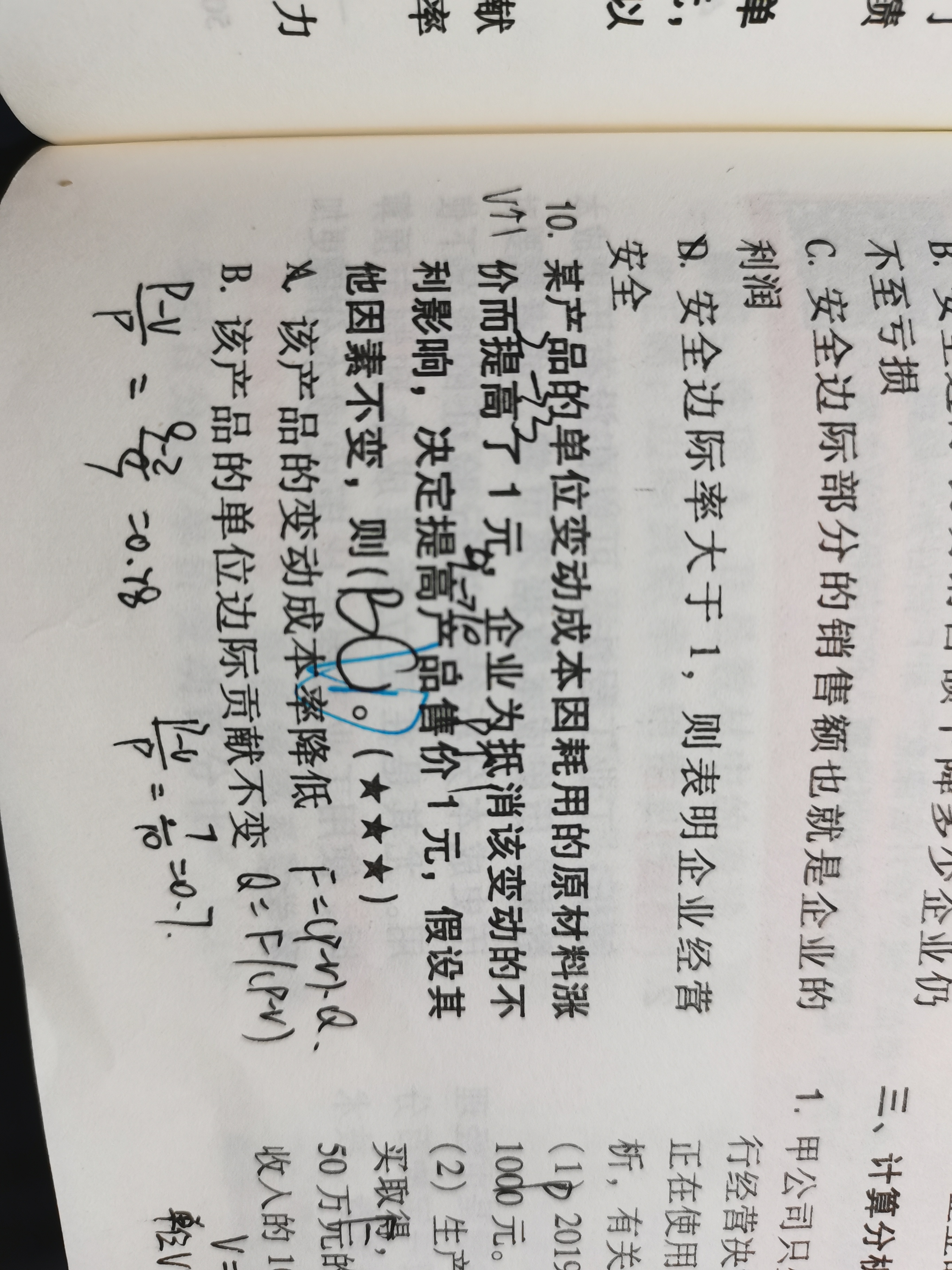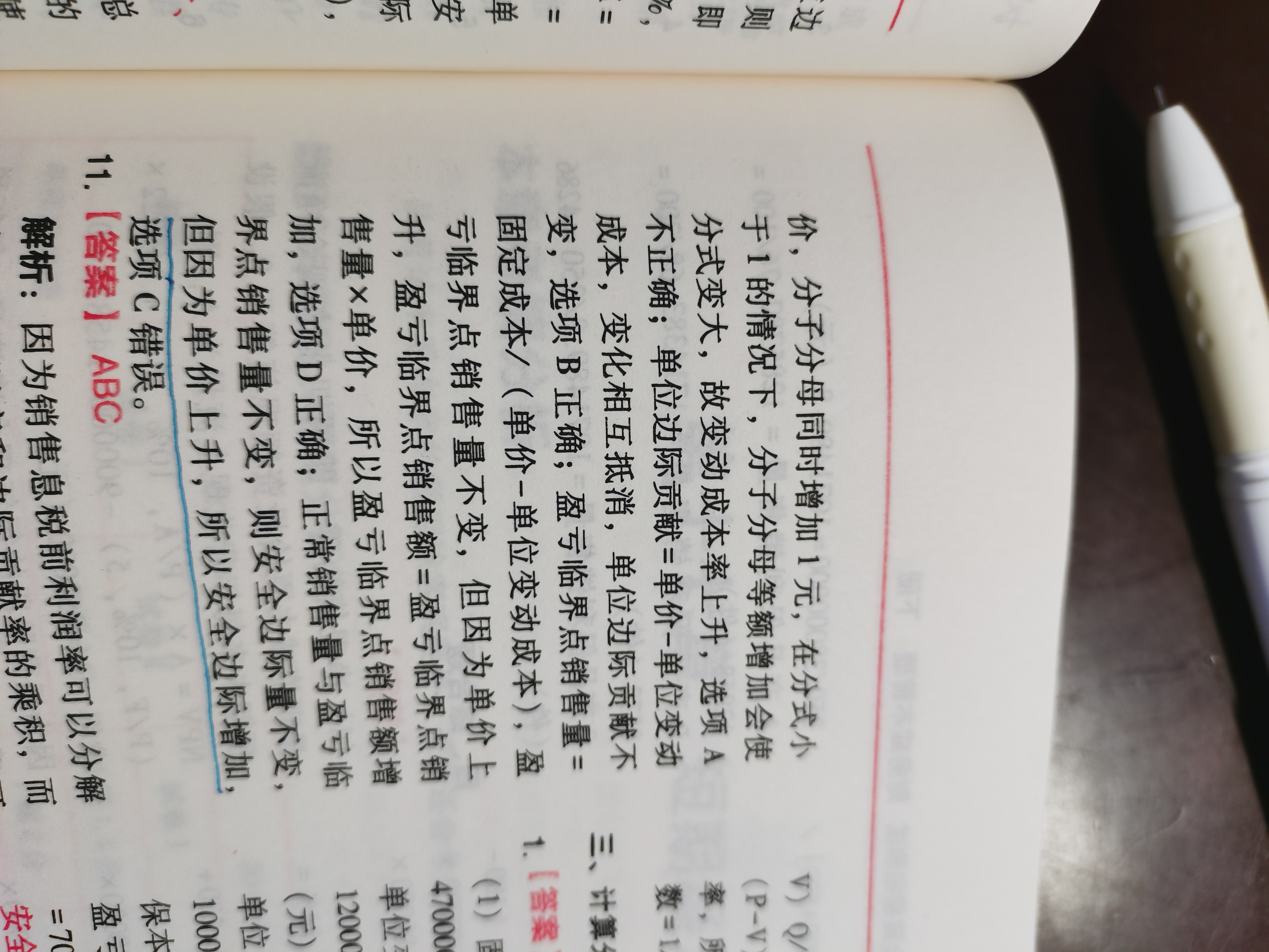 老师好,请问第四题的C选项,为什么说单价上升安全边际就增加呢?谢谢老师解答o(^o^)o