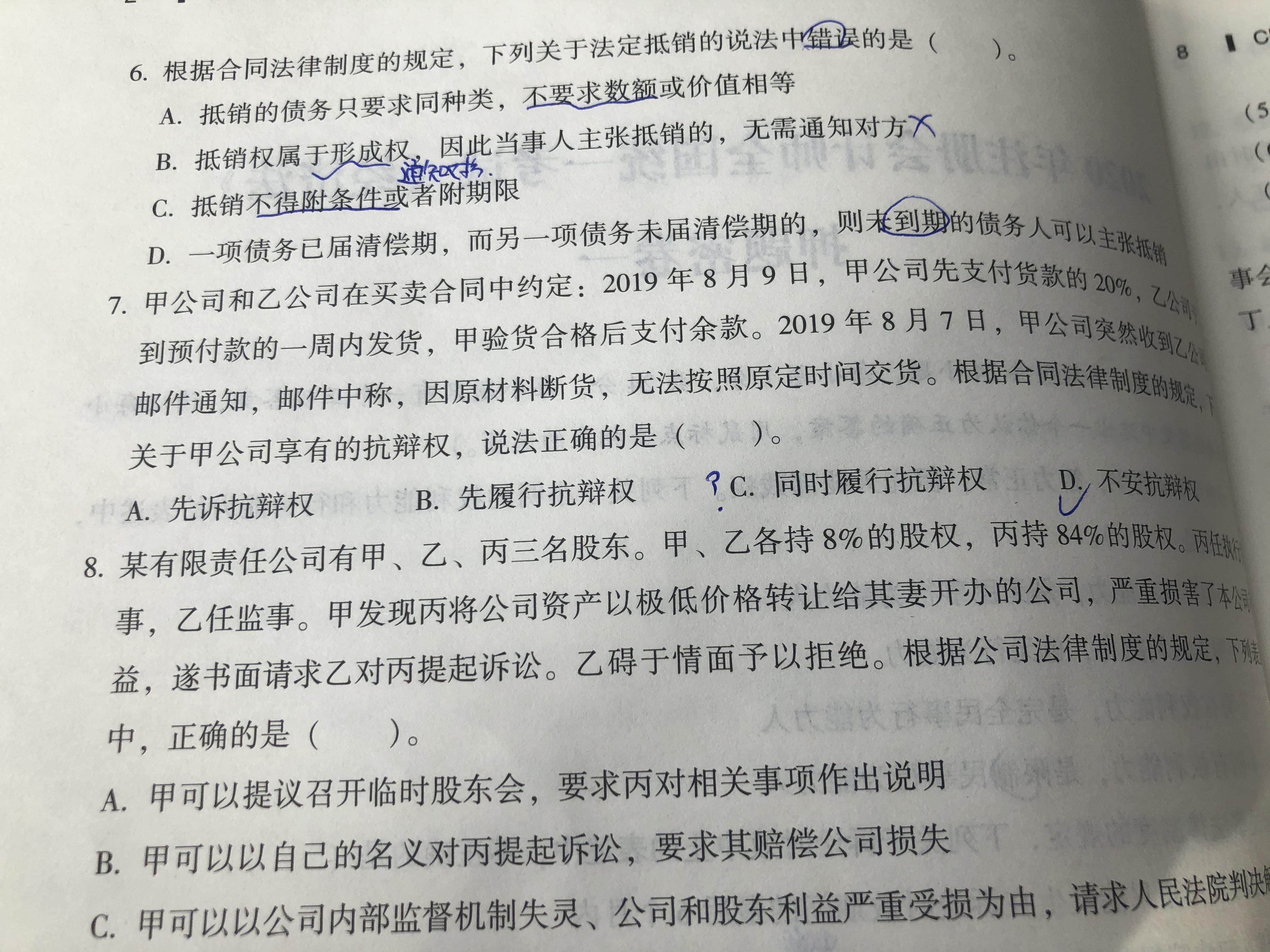 八九同学,你好,关于押题密卷7题,甲先付款不该是不安抗辩权吗? 我的回答如下