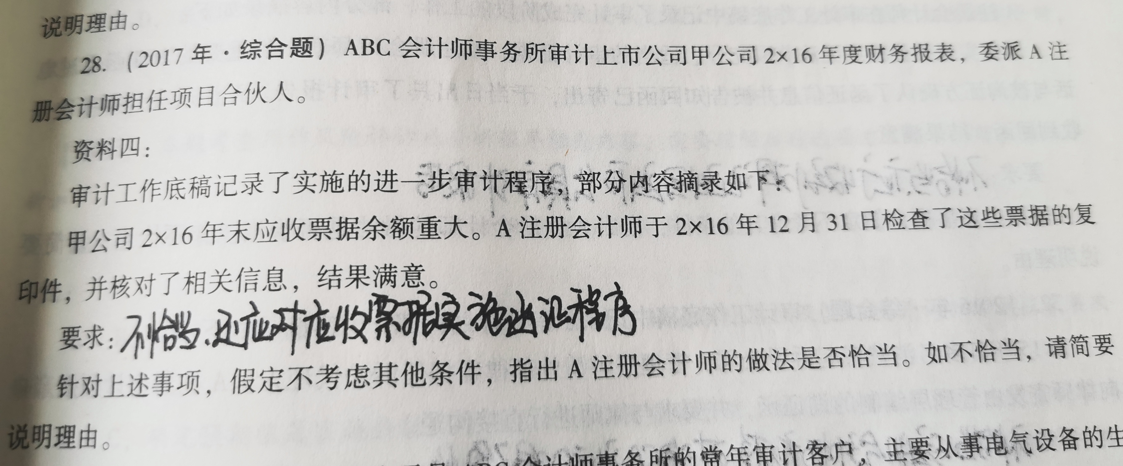 这样答其实不准确,因为应当实施函证程序,函证程序不一定是应当。可以说还应当实施其他审计程序。