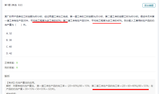 最后,要关注计算规律如遇到计算直接材料时,要关注一次投料的情形,这时在产品无论完工程度如何,都应和完工产品负担同样的材料成本,材料费用应按完工产品和在产品实际数量比例进行分配。如果材料是随着生产过程陆续投入的,则应按照各工序投入的材料成本在全部材料成本中所占的比例计算在产品的约当产量。