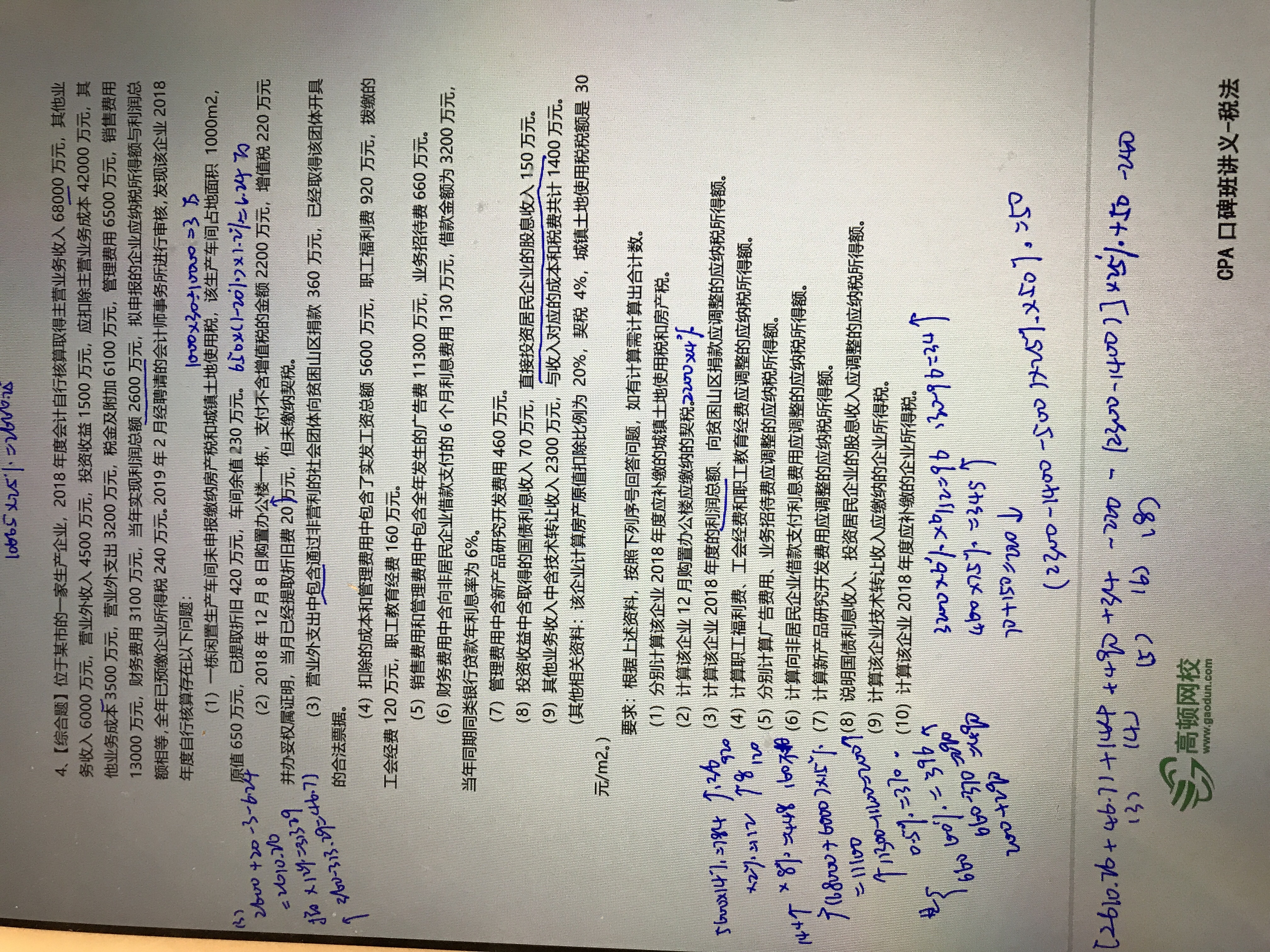 老师,这道题的技术转让那里,500万以下免,500万以上减半我明白,那个第9小问单独的。但是最后一问放一块时我没看懂了,为什么大括号里是2300-1400,后面又加上第九小问求出来的50呢?这样算出来不一样了啊。