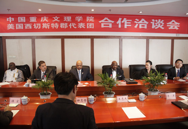 重庆文理学院与美国西切斯特郡代表举行合作洽谈会 高顿教育 2014-11-19 13:14:32