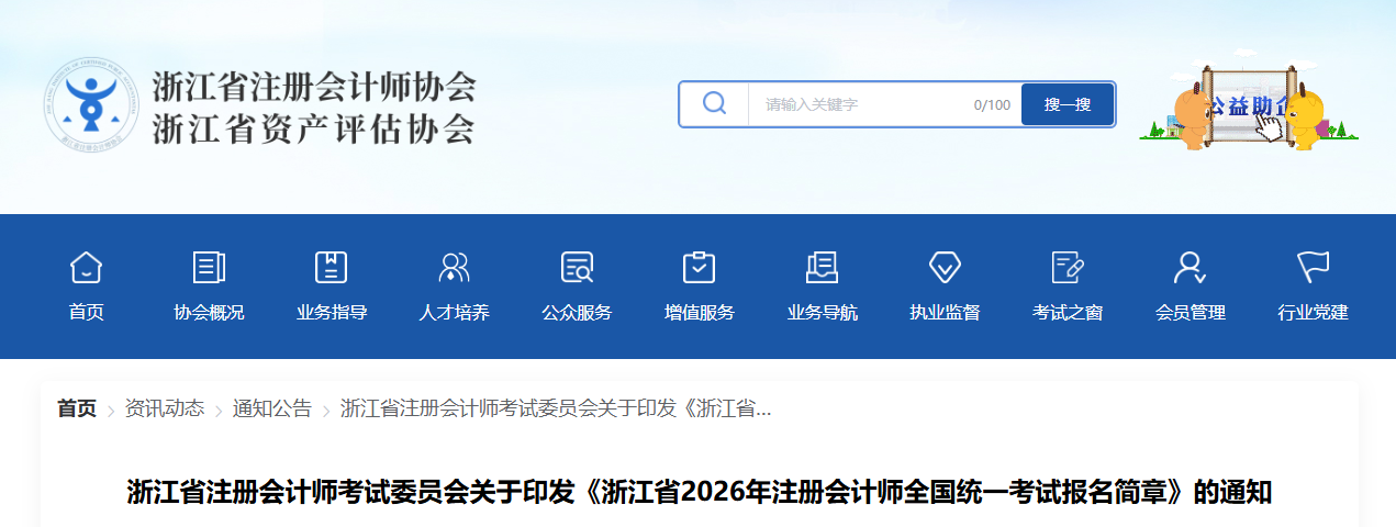 根据《注册会计师全国统一考试办法》和财政部注册会计师考试委员会印发的《2026年注册会计师全国统一考试报名简章》,现将浙江省2026年注册会计师全国统一考试报名有关事项规定如下: