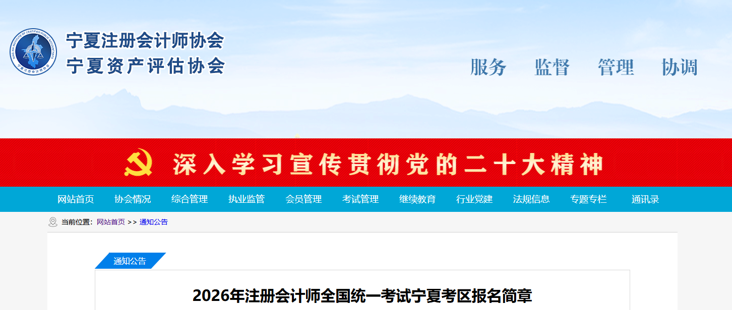 2026年注册会计师全国统一考试宁夏考区报名简章