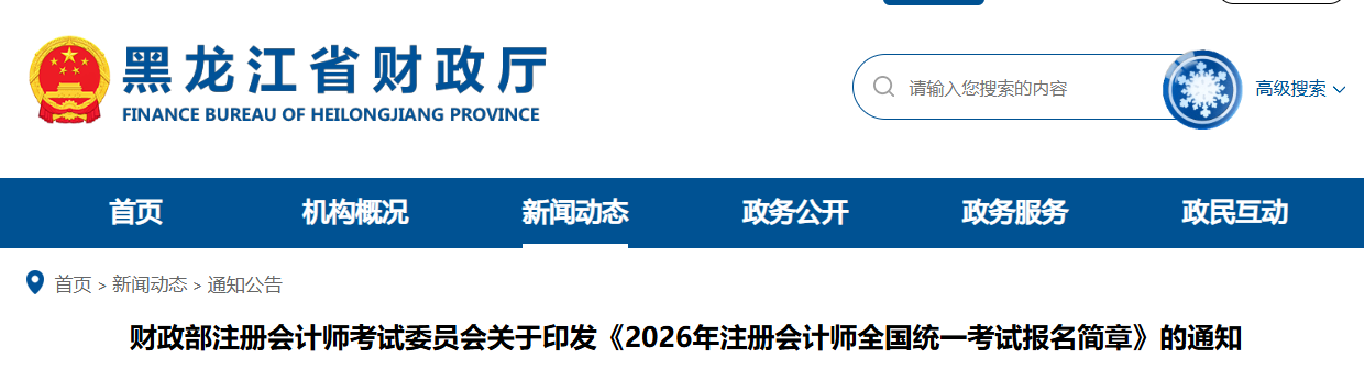 根据《注册会计师全国统一考试办法》和《2026年注册会计师全国统一考试报名简章》,现将黑龙江省2026年注册会计师全国统一考试报名有关事项规定如下: