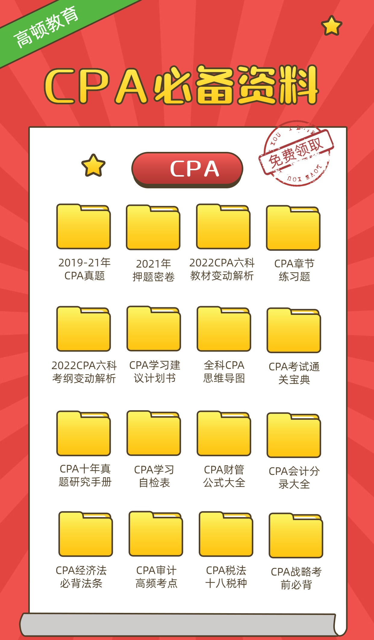 想要拿到更多更全面的CPA复习资料 还请通过扫码添加高级课程顾问获取