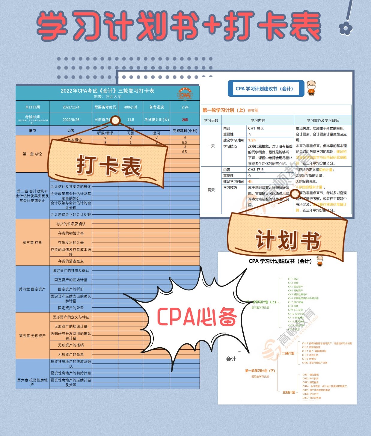 3、CPA六科学习计划表书+打卡表