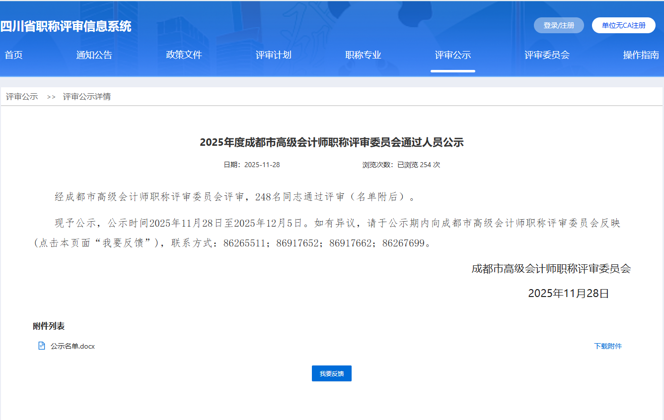 成都今日对2025高级会计评审通过人员进行公示