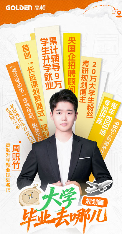 首期直播由高顿升学就业规划名师周贶竹主持,他具有深厚的政策解读能力与丰富的生涯规划实战经验,擅长以贯通式的长远视野,为学生提供兼具远见与实效的成长路径指引。