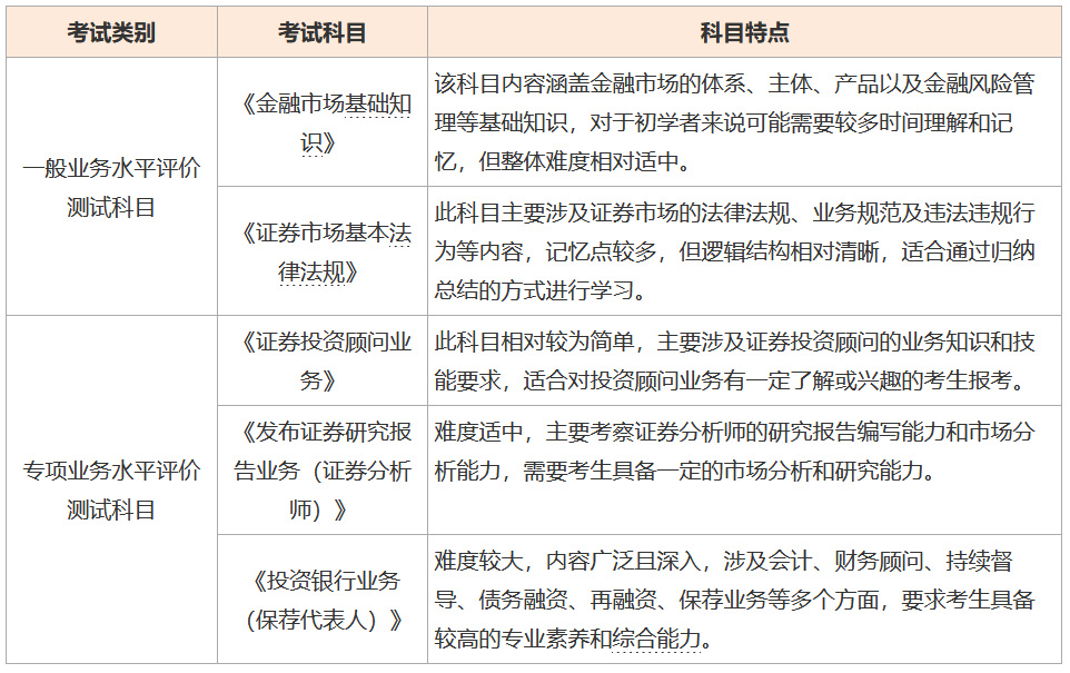 证券行业专业人员水平评价测试包括一般业务水平测试和专项业务水平测试两类,其中一般业务水平评价测试也就是以前的证券从业,属于入门级测试,考核相对比较简单;专项业务水平评价测试包括证券投资顾问、证券分析师、保荐代表人三个方向,难度相对大一些。难易度排名参考证券一般业务水平测试<证券投资顾问<证券分析师<保荐代表人。